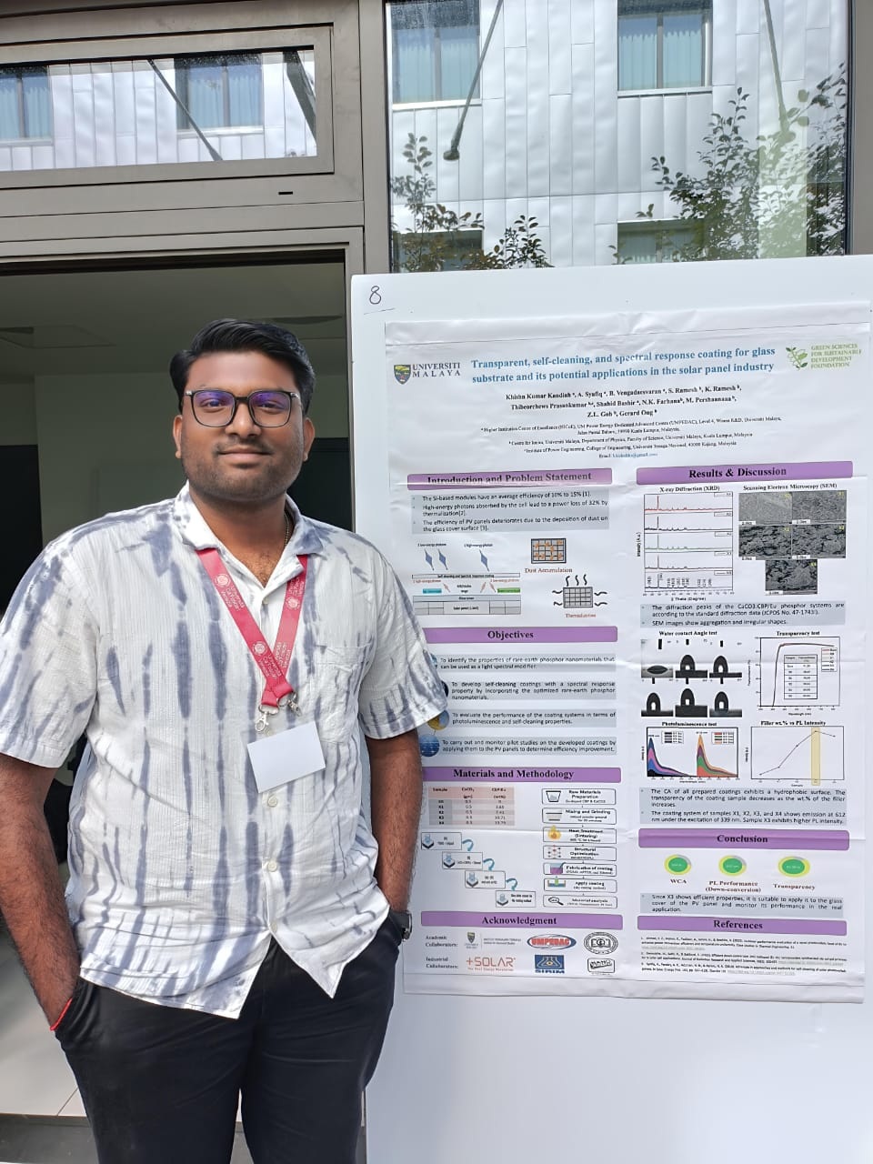 Our postgraduate student, Khishn Kumar Kandiah has attended a summer school programme in Venice, Italy. He presented his poster on "Transparent, self‑cleaning, and spectral response coating for glass substrate and its potential applications in the solar panel industry."